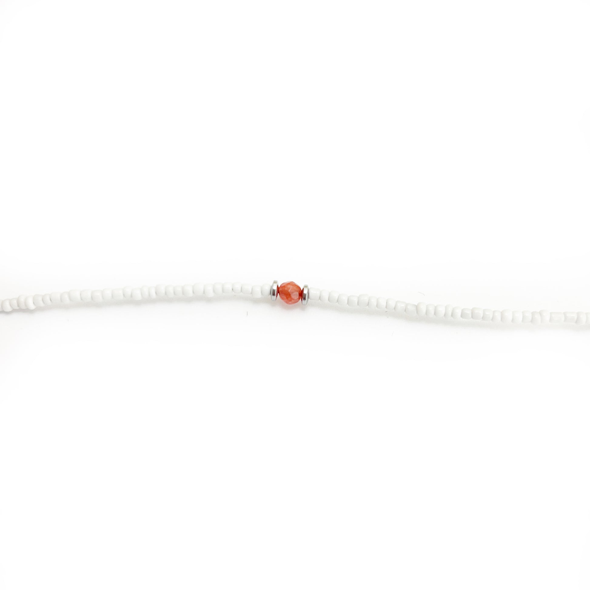 Differenr colored stones with gold or silver hematite, surrounded by basic white beads
